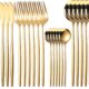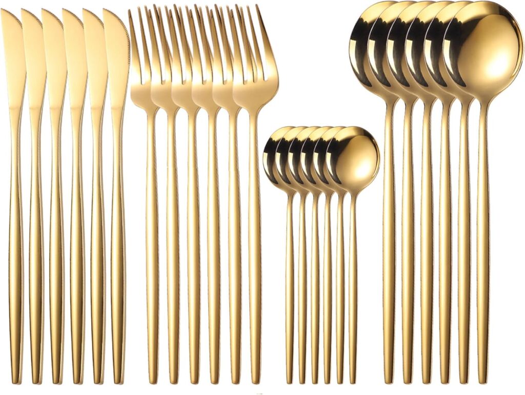 24-Piece Cutlery Set, Stainless Steel Cutlery for 6 Persons Includes Knives, Forks and Spoons, Cutlery Set for Kitchen, Restaurant, Dishwasher Safe (Gold)