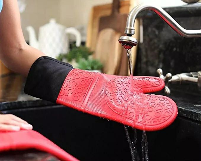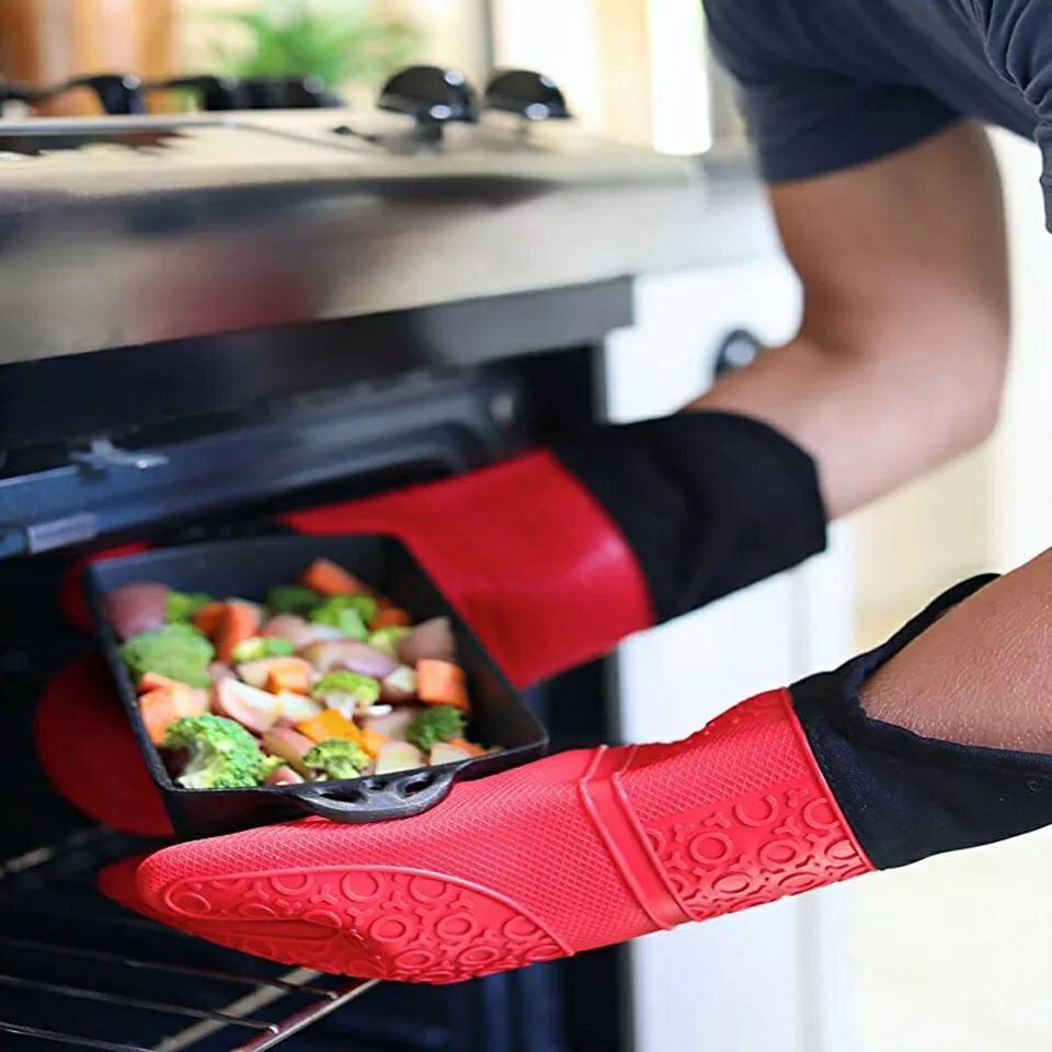 Silicone Thermal Gloves Long Padded Inside Heavy Material Silicone Outer Fabric Inner Heat Resistant Multicolor