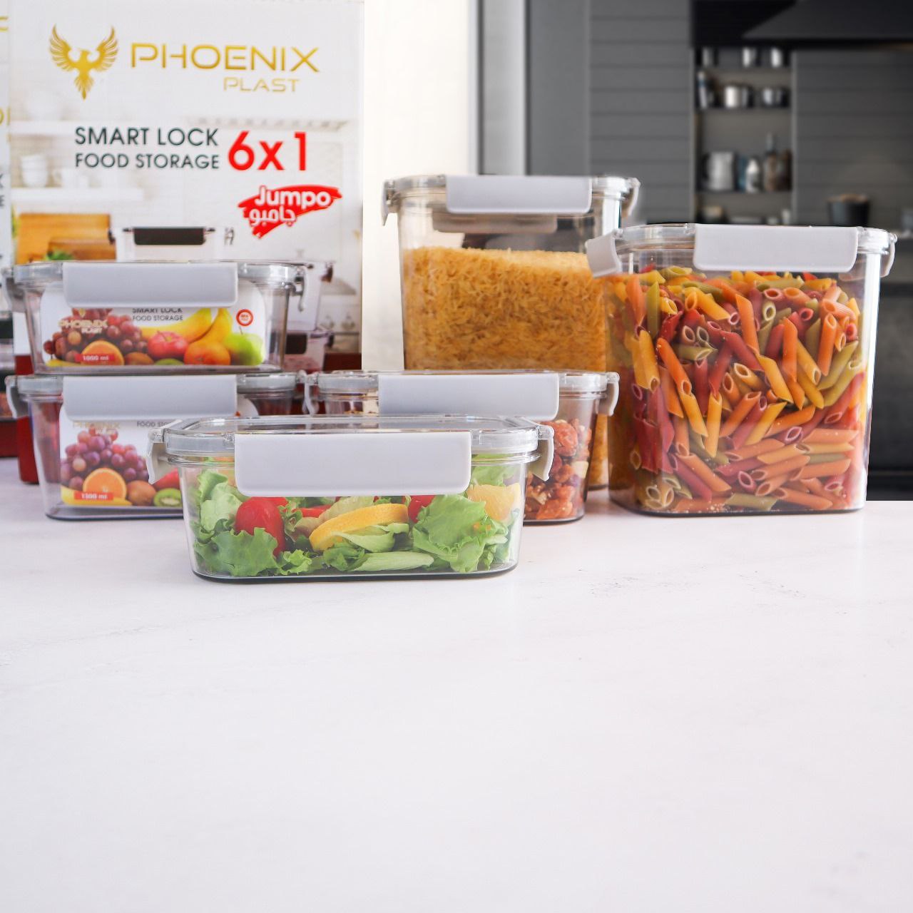 Generic Acrylic Refrigerator Food Container Set, 6 Pieces Airtight Lock with Clear Silicone Sealing Sides, Transparent Storage Boxes for Fresh Food, Fridge, Kitchen Organization.