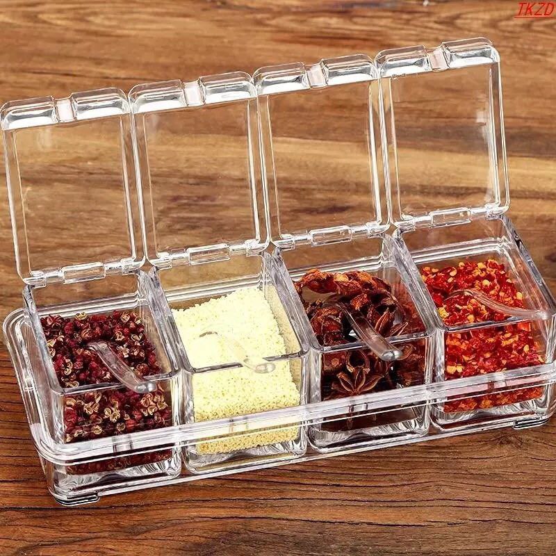 Generic Modern Crystal Acrylic Spice Set 4 Piece Set with Stands and Spoon Stands