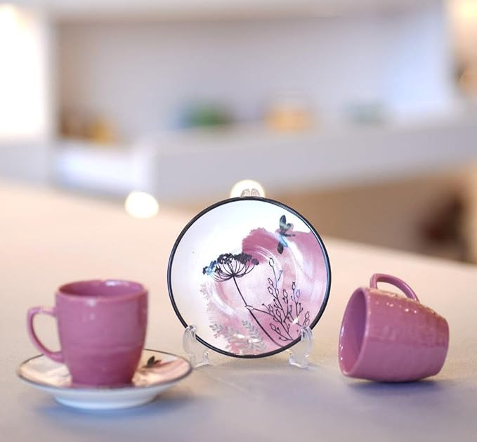 Generic Porcelain Coffee Cup Set, 2 Cups and 2 Serving Plates, (PINK)