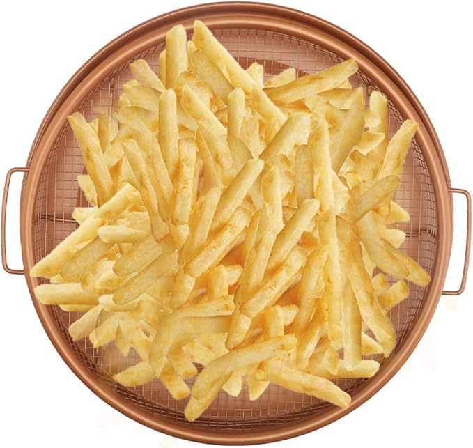 Round Tray with Strainer for Oven Cooking, Practical Design Allows Fat to Go Down for Crispy and Lighter Fat Food