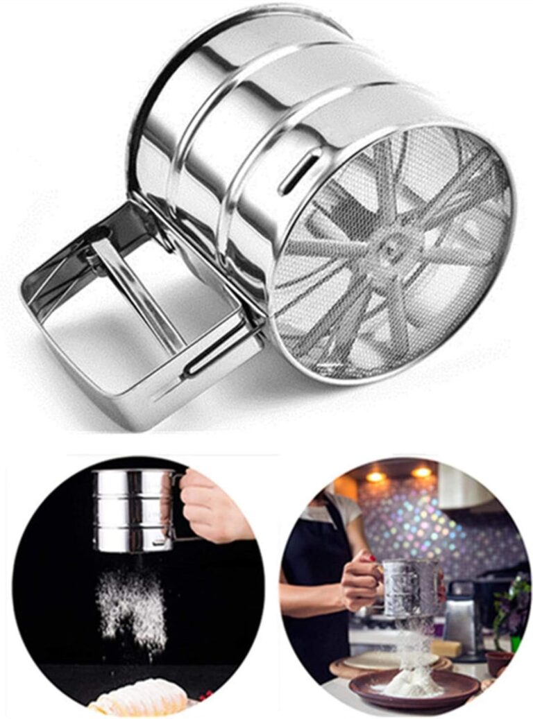 Portal Stainless Steel Flour Sieve, Manual Hand Sieve, Fine Mesh Sieve, Sifting Flour and Icing Sugar with Handle Flour Shaker – Flour Sifter Hand Held – Bake & Decorate Cakes, Pies(Silver)
