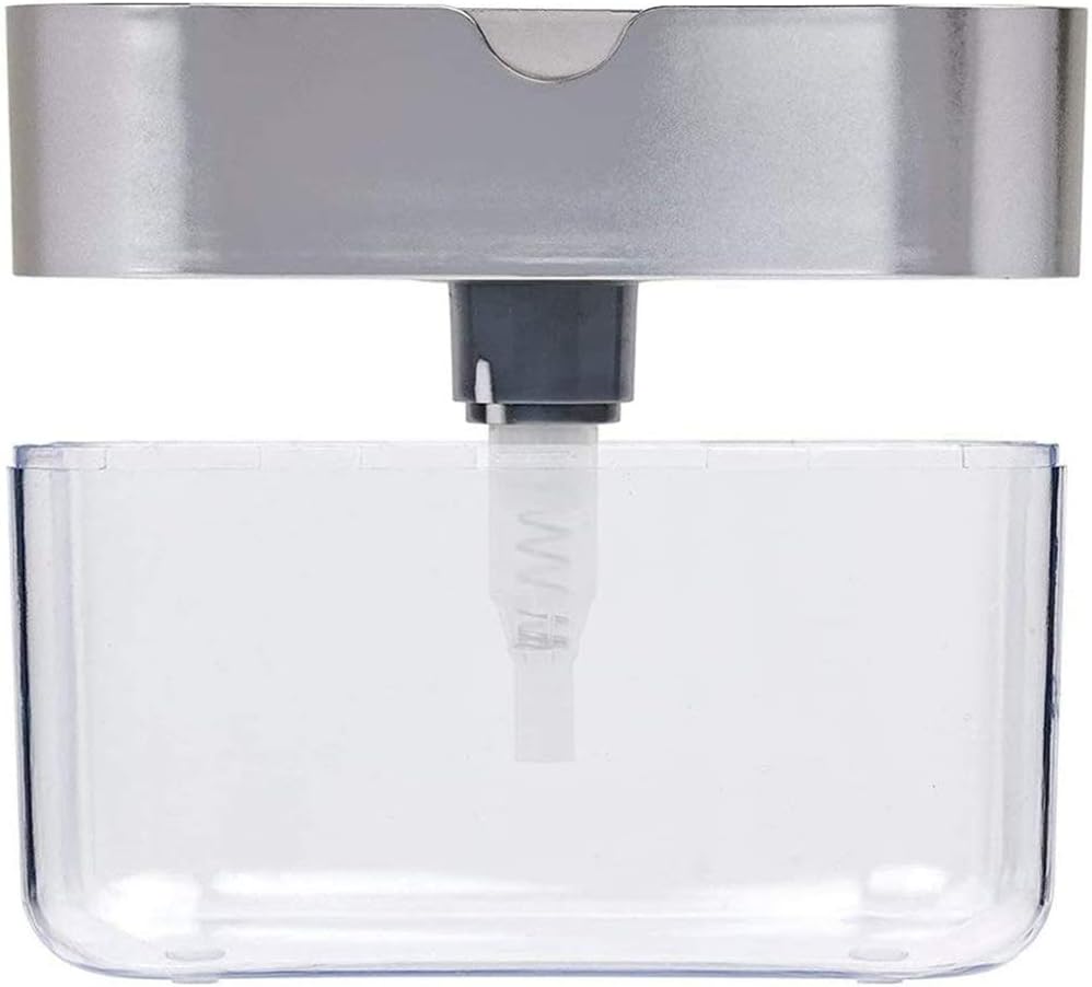 - [SAVE YOUR SPACE & TIME] The sponge holder is integrated on top of the dispenser, cut down on sink clutter. When you clean the dish and need more soap, just pump again. No more stopping to grab the soap bottle.