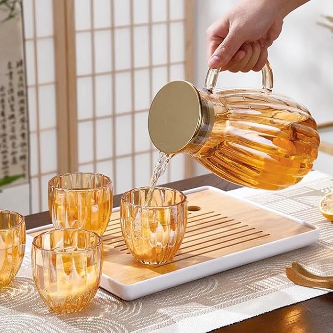 - ELEGANT DESIGN: Beautiful amber-coloured glass set featuring a pumpkin-ribbed pattern that adds sophistication to any dining table or tea service