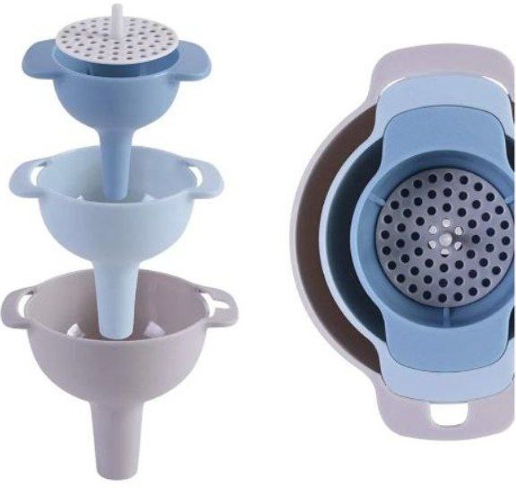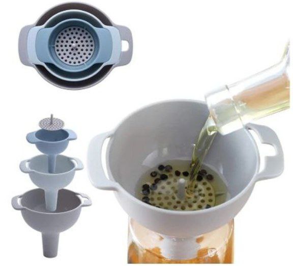 - 【Well designed】this set of 3 kitchen funnels includes 2.3″, 3.1″, and 3.9″ diameter ports to suit your different needs. With proven craftsmanship and great looks, funnels for kitchen use are perfect for your everyday needs. Unlike other colored funnel sets, our funnels actually bring elegance into your kitchen.