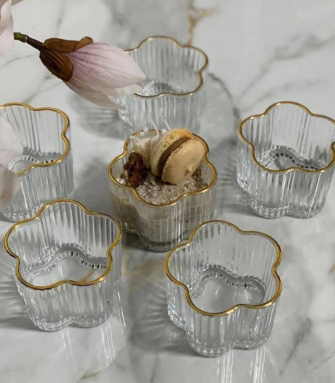 - This exquisite 6-piece crystal glass set features a luxurious gold-rimmed design, perfect for serving rice pudding, muhallabiya, soups, and salads with elegance, making it ideal for modern dining tables and special occasions.