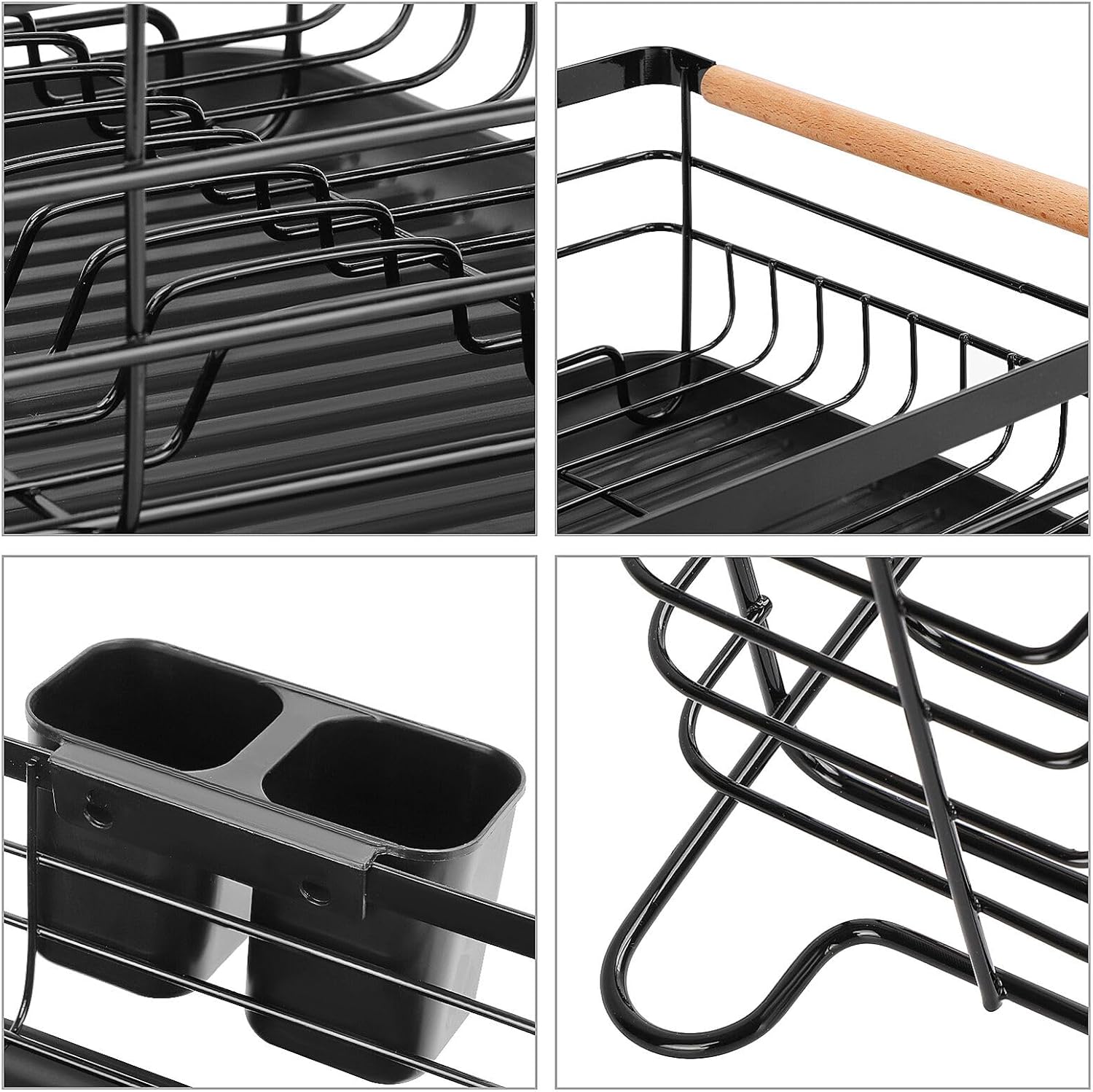 - ✔️ STYLISH DESIGN The dish drying rack is not only functional but also a stylish accessory for your kitchen. The wooden handles give it an elegant look that fits any kitchen style.