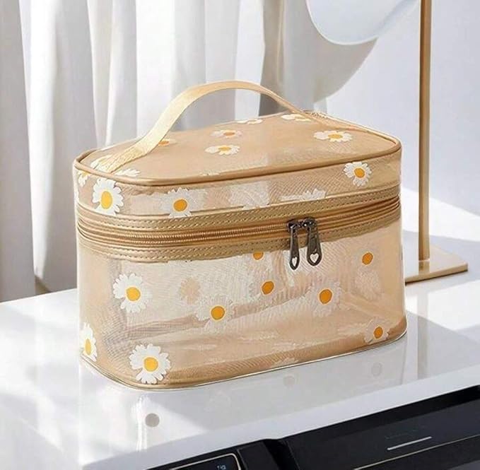 - DESIGN FEATURES: Beautiful beige toiletry bag set with delicate daisy pattern print and durable zipper closure for secure storage of personal items