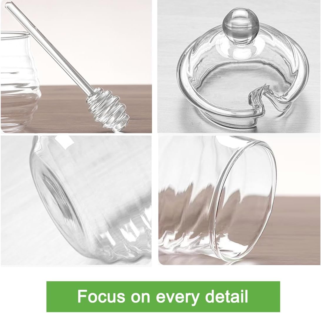 Glass Honey Jar with Dipper and Lid, 14 oz Heat Resistant Honey Pot, Coffee Bar Decor
