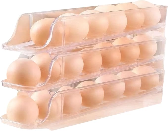 Stackable Clear Acrylic Egg Holder Set of 3 – Vertical and Horizontal Kitchen and Refrigerator Organizer for 12 Eggs – Space-Saving Durable Egg Storage